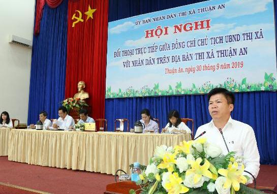 TP.Thuận An tổ chức được 2 cuộc đối thoại cấp thành phố với 240 lượt người dự, có 37 lượt ý kiến phát biểu. Tại các buổi đối thoại, lãnh đạo TP.Thuận An đã lắng nghe người dân phát biểu ý kiến, kiến nghị liên quan đến lĩnh vực đất đai, cấp phép xây dựng, đăng ký kinh doanh, các vấn đề trật tự an toàn xã hội (TTATXH). Tại 10 xã, phường trên địa bàn TP.Thuận An cũng đã tổ chức 27 cuộc đối thoại với 2.905 lượt người dân tham dự. Còn ở TP.Dĩ An, TX.Bến Cát… việc đối thoại giữa người đứng đầu cấp ủy Đảng, chính quyền các cấp với nhân dân cũng được tổ chức thường xuyên theo kế hoạch từng năm, từng quý. Cụ thể, TP.Dĩ An đã ghi nhận hàng trăm ý kiến, kiến nghị của cán bộ và nhân dân thông qua các hội nghị đối thoại. Trong đó, có những vấn đề người dân chưa nhận thức đúng, chưa đồng thuận, những nguyện vọng, mong muốn của dân về những vấn đề phát sinh trong phát triển kinh tế - xã hội ở địa phương.