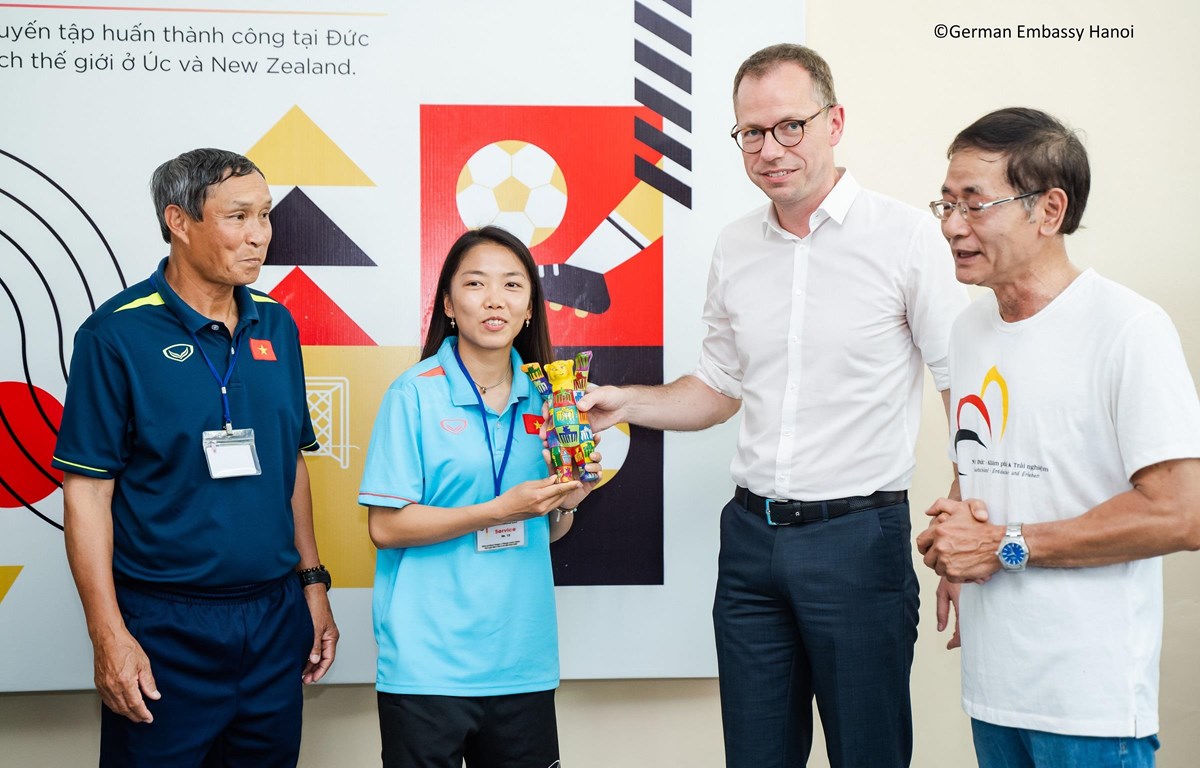 Tại buổi giao lưu, Phó Đại sứ Simon Kreye chúc mừng đội tuyển đã vượt qua vòng loại để lần đầu tiên tham dự Vòng chung kết Giải vô địch bóng đá nữ thế giới và rất vui mừng vì đội sang Đức tập huấn để chuẩn bị cho World Cup Bóng đá Nữ 2023.