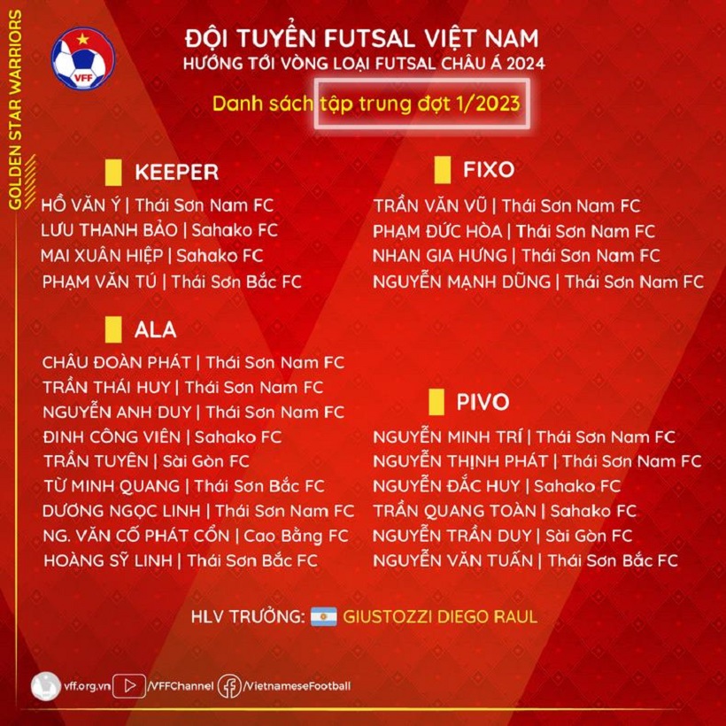 Danh sách tập trung đợt 1 của đội tuyển futsal Việt Nam trong năm 2023.