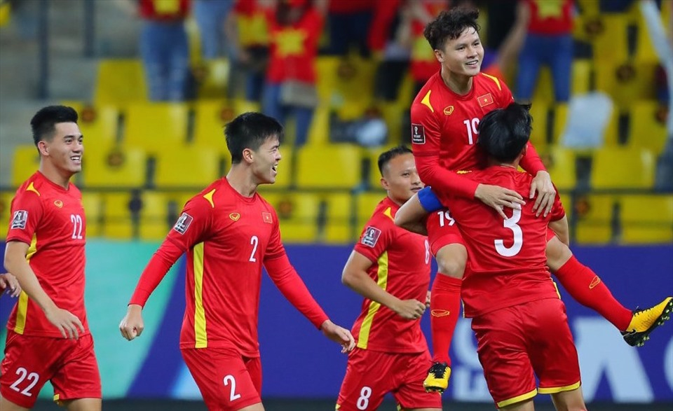 Quang Hải (số 19) có bàn thắng đẹp và nhanh nhất vào lưới Saudi Arabia ở vòng loại cuối cùng Word Cup 2022. Ảnh: ANH HUY