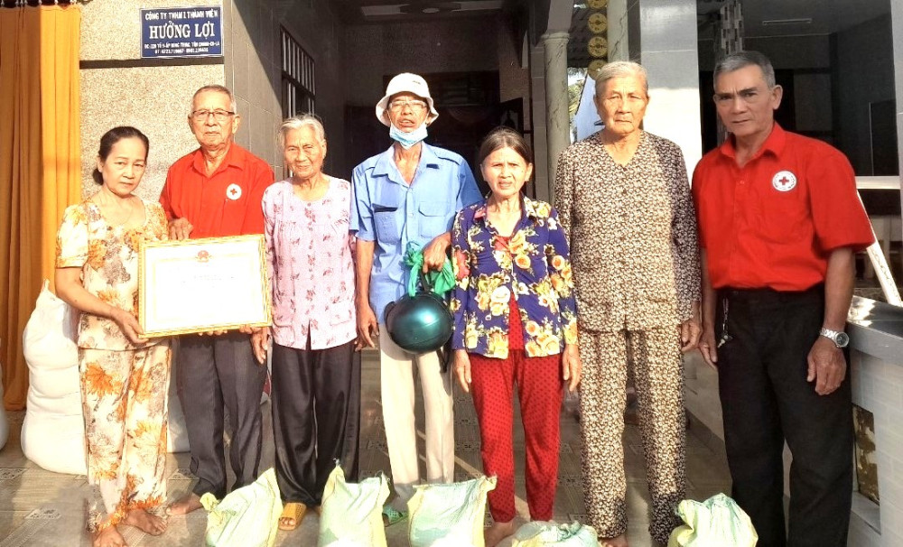 Vào các dịp lễ, tết, bà Nguyễn Thị Lang (ấp Đông Trung, xã Tân Chánh, huyện Cần Đước) thường xuyên tặng quà, nhu yếu phẩm cho hộ nghèo, cận nghèo, có hoàn cảnh khó khăn trên địa bàn xã