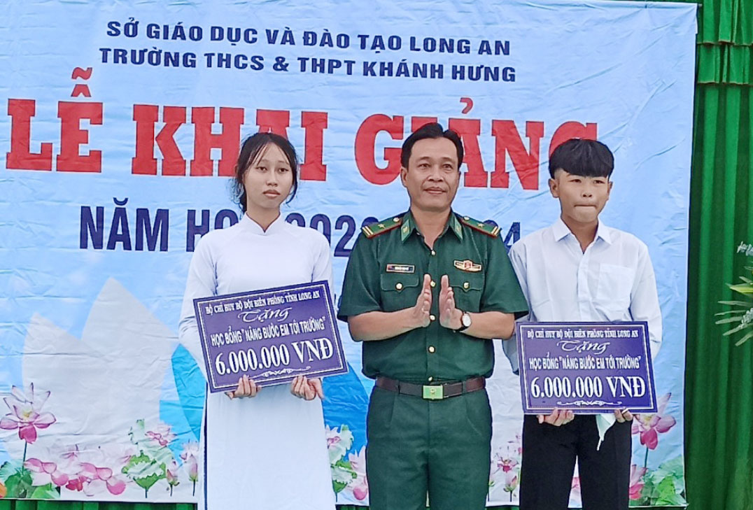 Em Nguyễn Thị Thanh Tuyền (học sinh lớp 12A2, Trường THCS&THPT Khánh Hưng) vừa nhận được suất học bổng trị giá 6 triệu đồng, vui mừng nói: “Được các chú bộ đội biên phòng trao học bổng, em vui lắm! Số tiền này giúp gia đình em vơi bớt khó khăn trong việc lo cho em đến trường. Em hứa sẽ cố gắng học tập tốt để không phụ lòng các chú bộ đội, thầy cô, gia đình”.