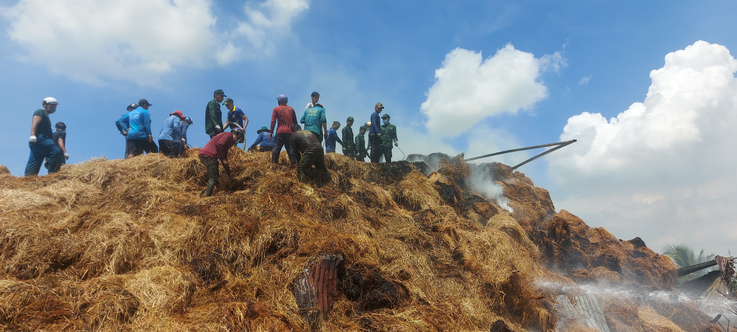 Nhận được tin báo của người dân, đơn vị cử 20 cán bộ, chiến sĩ phối hợp cùng địa phương, công an, Ban Chỉ huy quân sự xã Phú Hữu và người dân tham gia chữa cháy.