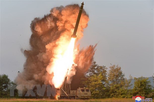 Một vụ thử tên lửa tại địa điểm không xác định ở Triều Tiên ngày 10/9/2019. (Nguồn: AFP/TTXVN)