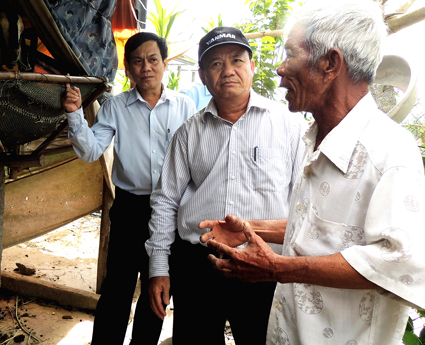 | Ông Đào Anh Dũng, Phó Chủ tịch UBND TP Cần Thơ (đứng giữa) tham quan mô hình nuôi dê tại xã Thạnh Lộc. |