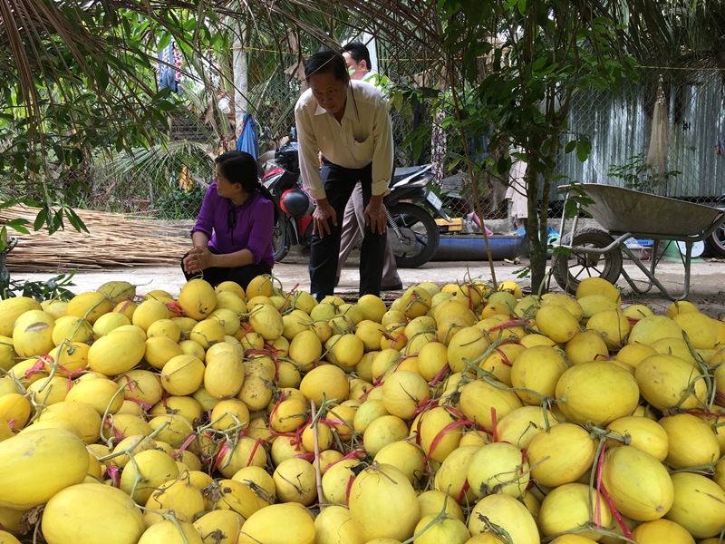 | Thu hoạch dưa vàng ở Vĩnh Long. (Ảnh: K.V) |