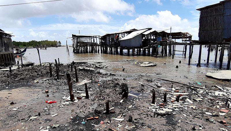 | Một khu dân cư bị sạt lở ở khu vực ĐBSCL. (Ảnh: Báo Cà Mau) |