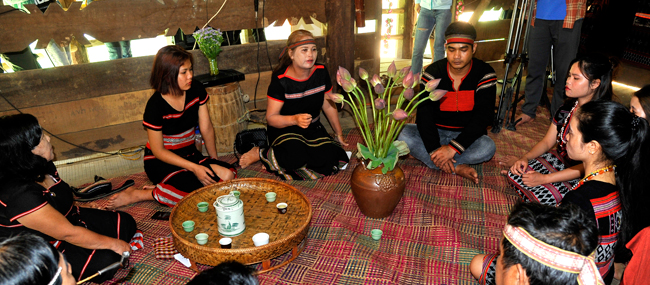 | Đồng bào các dân tộc quây quần kể cho nhau nghe những câu chuyện, và chia sẻ những tình cảm tốt đẹp của mình về Bác Hồ. |