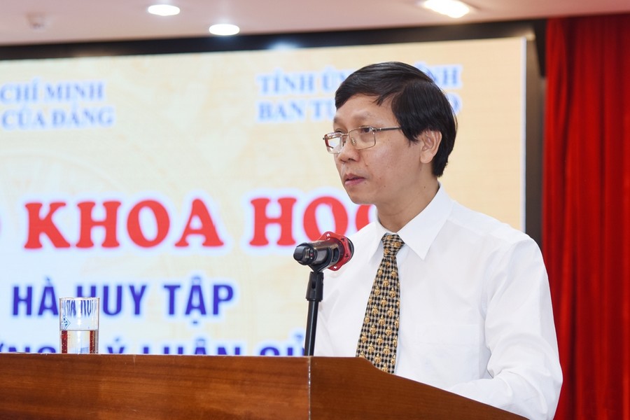 Đề dẫn hội thảo, PGS.TS Lý Việt Quang - Viện trưởng Viện Hồ Chí Minh và các Lãnh tụ của Đảng ôn lại tiểu sử, cuộc đời, sự nghiệp hoạt động cách mạng của đồng chí Hà Huy Tập.
