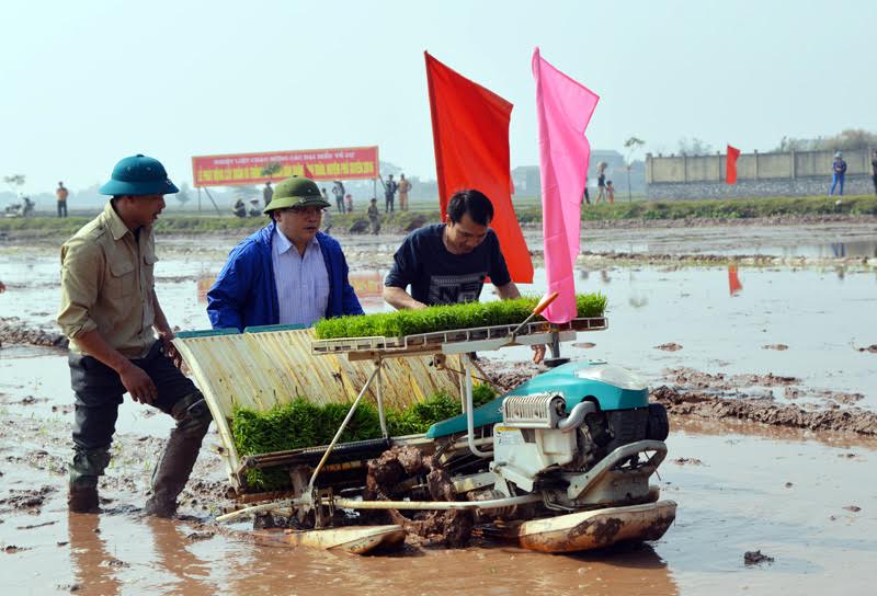 Về phát triển nông nghiệp, đồng chí Hoàng Trung Hải cho rằng đây là lĩnh vực quan trọng, cần phải cải tiến đổi mới cả phương thức và cách làm. Thời gian qua, huyện Phú Xuyên nói riêng và các vùng nông thôn Hà Nội nói chung đã gặt hái được nhiều thành quả, trong đó nổi bật là công tác dồn điền đổi thửa và đưa cơ giới hóa vào sản xuất nông nghiệp, hạn chế sức lao động, nhưng hiệu quả và giá thành được nâng lên.