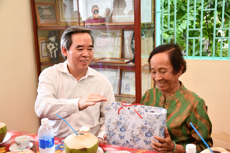 Thay mặt đoàn, đồng chí Nguyễn Văn Bình, Uỷ viên Bộ Chính trị, Bí thư Trung ương Đảng, Trưởng ban Kinh tế Trung ương chúc các mẹ, các chị mạnh khoẻ, sống vui, góp phần cùng với Đảng bộ tỉnh Bến Tre giáo dục truyền thống yêu nước cho thế hệ trẻ của tỉnh nhà.