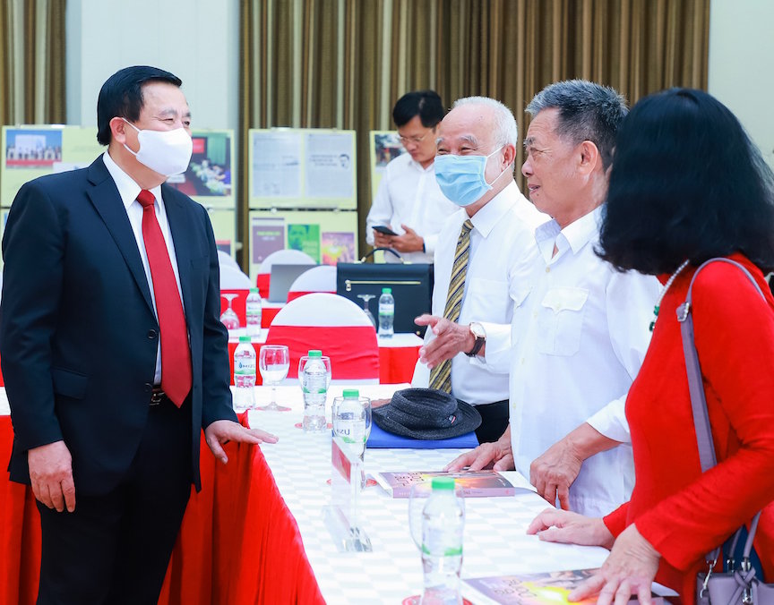 | Đồng chí Nguyễn Xuân Thắng trao đổi với các đại biểu dự Hội thảo |
