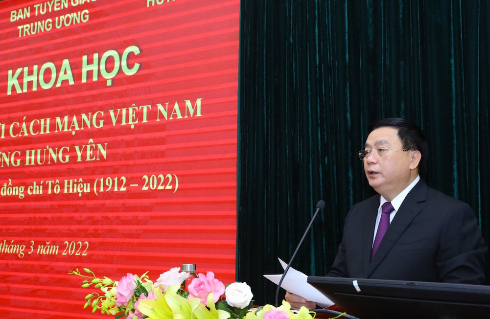 Phát biểu khai mạc và đề dẫn, GS,TS Nguyễn Xuân Thắng, Ủy viên Bộ Chính trị, Giám đốc Học viện Chính trị quốc gia Hồ Chí Minh, Chủ tịch Hội đồng Lý luận Trung ương nêu rõ, Hội thảo là hoạt động thiết thực kỷ niệm 110 năm ngày sinh đồng chí Tô Hiệu (1912 - 2022) - người cộng sản kiên trung, nhà lãnh đạo tiền bối tiêu biểu của Đảng và cách mạng Việt Nam, người con ưu tú của quê hương Hưng Yên. Hội thảo là hoạt động thiết thực để chúng ta ôn lại cuộc đời cách mạng vẻ vang và tri ân những cống hiến to lớn của đồng chí Tô Hiệu đối với sự nghiệp cách mạng vẻ vang của Đảng và dân tộc. Đồng thời, góp phần giáo dục truyền thống, lý tưởng cách mạng cho cán bộ, đảng viên và các tầng lớp nhân dân đặc biệt là đối với thế hệ trẻ.