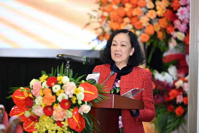 Phát biểu tại buổi lễ, Thường trực Ban Bí thư Trương Thị Mai gửi lời chúc tốt đẹp nhất tới các đồng chí lãnh đạo, nguyên lãnh đạo cùng toàn thể cán bộ, phóng viên Báo Nhân Dân cuối tuần.