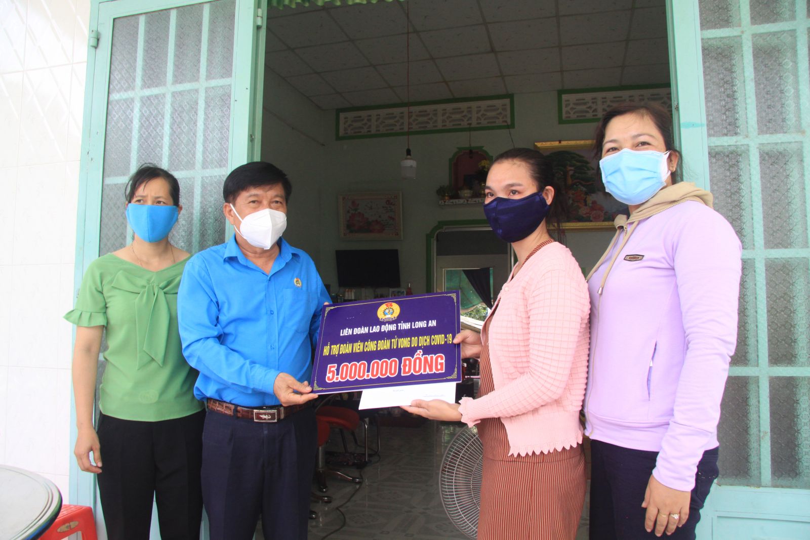 Chủ tịch Liên đoàn Lao động tỉnh - Nguyễn Văn Quí tặng quà gia đình công nhân, lao động bị tử vong do dịch Covid-19