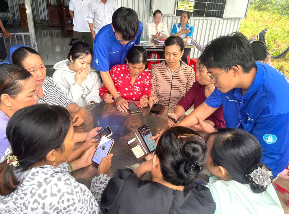 Thực hiện phong trào Bình dân học vụ số, đoàn viên, thanh niên hướng dẫn người dân sử dụng các tiện ích trên điện thoại di động