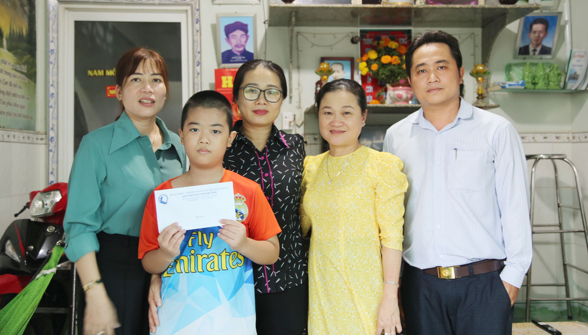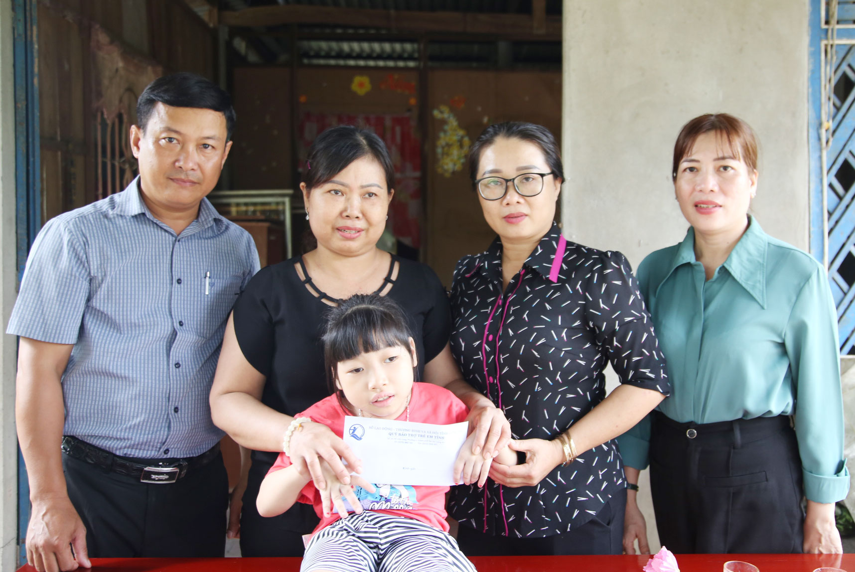Em Nguyễn Ngọc Bích Trăm (ấp 4, xã Tân Thành, huyện Tân Thạnh) nhận hỗ trợ đột xuất từ Quỹ Bảo trợ trẻ em tỉnh