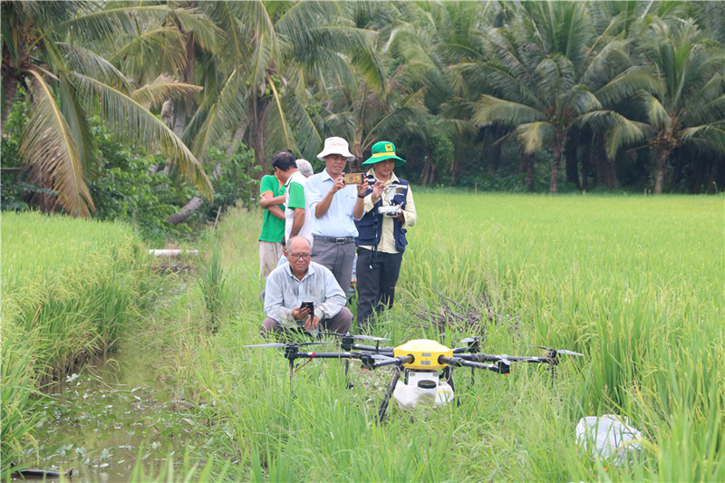 Điểm nổi bật là Trung tâm Khuyến nông và Dịch vụ nông nghiệp tỉnh Hậu Giang đã tập trung hỗ trợ đưa các loại thiết bị cơ giới vào phục vụ sản xuất nông nghiệp. Nhờ vậy, số lượng máy móc và tỷ lệ áp dụng cơ giới trong sản xuất trên địa bàn tỉnh không ngừng tăng qua các năm. Đến nay, nhiều tổ hợp tác dịch vụ mạ khay, cấy máy đã được thành lập nhờ sự hỗ trợ kỹ thuật, cầm tay chỉ việc của đội ngũ cán bộ khuyến nông. Đặc biệt, để thúc đẩy ứng dụng công nghệ thông minh vào sản xuất nông nghiệp, Trung tâm đã thành lập Tổ vận hành máy bay phun thuốc bảo vệ thực vật. Đến nay, Tổ đã sử dụng máy bay phun thuốc phục vụ phun cho người dân trên diện tích hàng trăm ha. Máy bay phun thuốc không người lái được định vị qua vệ tinh, tự động phun kể cả trong đêm với năng suất phun 4 - 5 ha/giờ. Chị Nguyễn Thị Bé Tư ở xã Vĩnh Thuận Đông, huyện Long Mỹ (Hậu Giang) chia sẻ: “Sử dụng máy bay phun thuốc bảo vệ thực vật vừa giúp bảo vệ sức khỏe người sản xuất và môi trường, vừa nâng cao hiệu quả phòng trừ sâu bệnh trong sản xuất nông nghiệp, giảm chi phí sản xuất… Do đó, bà con rất hào hứng với phương pháp hiện đại này”.