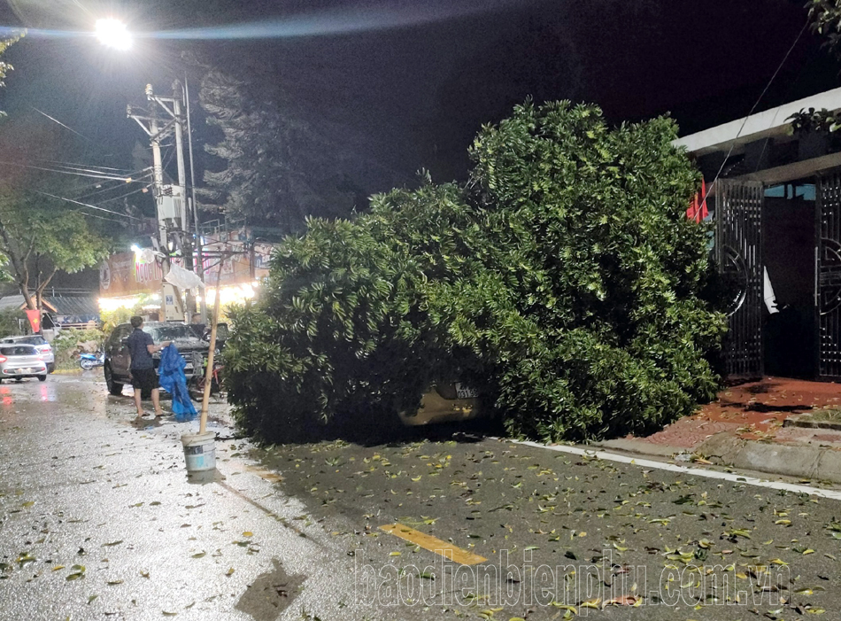 | Nhiều cây cối gãy đổ tại các tuyến đường trung tâm thành phố Điện Biên Phủ (Nguồn ảnh: baodienbienphu.com.vn) |
