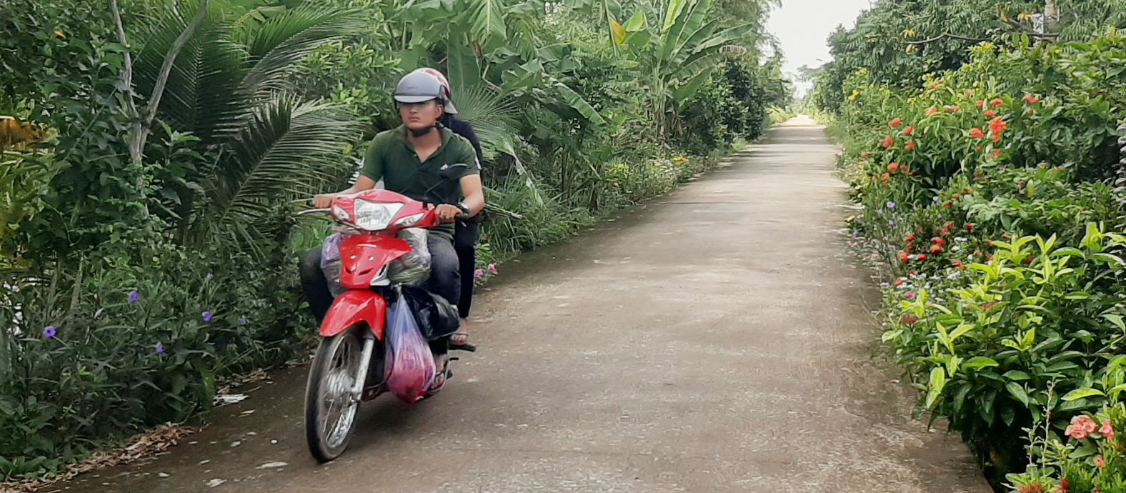 Những ngày đầu tháng 11, chúng tôi có dịp về ấp Cá Tôm. Ấn tượng đầu tiên đối với chúng tôi là những tuyến đường giao thông nông thôn được bêtông sạch, đẹp và dọc hai bên đường là những bông hoa nở rực cả bầu trời. Tất cả làm cho lòng người nhẹ nhàng, mọi áp lực của cuộc sống đều tan biến hết, chỉ để lại niềm vui trước sự đổi thay của quê hương. Thấy người lạ dừng lại chụp ảnh bên những cung đường hoa trước cửa nhà, ông Ngô Văn Phỉ (ấp Cá Tôm) mời chúng tôi vào nhà uống tách trà, kể cho chúng tôi nghe về hành trình vượt khó của người dân nơi đây.