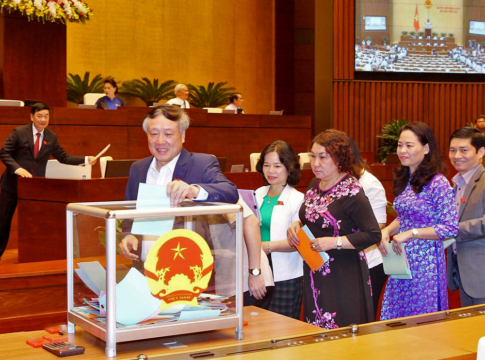 | Đại biểu bỏ phiếu đánh giá mức độ tín nhiệm các chức danh cho Quốc hội bầu và phê chuẩn. Ảnh: Trúc Linh. |