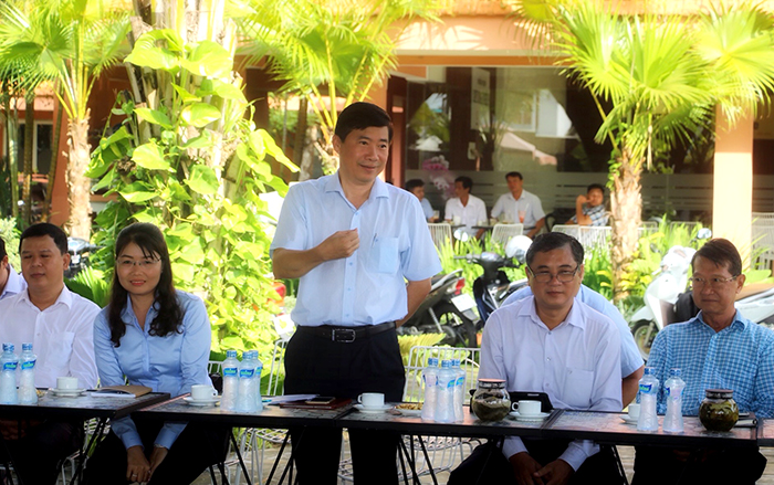 | Chủ tịch Uỷ ban nhân dân tỉnh Phạm Thiện Nghĩa gặp gỡ doanh nghiệp trong Khu công nghiệp Sa Đéc. Ảnh: Văn Khương |
