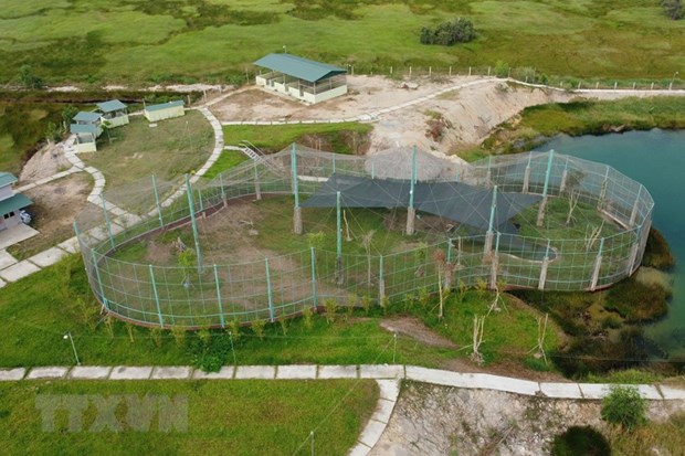 Chuồng dùng để nuôi nhốt các loài chim tại Trại bảo tồn sinh vật Vườn quốc gia Tràm Chim. (Ảnh: Nhựt An/TTXVN)