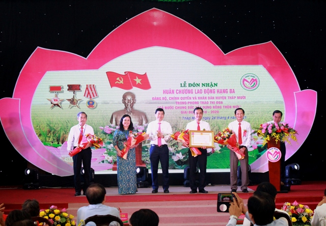 Tại buổi lễ, thừa ủy nhiệm của Chủ tịch nước Cộng hòa xã hội chủ nghĩa Việt Nam, đồng chí Phạm Thiện Nghĩa – Chủ tịch UBND tỉnh Đồng Tháp đã trao Huân chương Lao động hạng Ba cho Đảng bộ, chính quyền và Nhân dân huyện Tháp Mười vì có thành tích xuất sắc trong phong trào thi đua “Cả nước chung sức xây dựng nông thôn mới”, giai đoạn 2016 – 2020. Nhiều tập thể, cá nhân vinh dự nhận Bằng khen của UBND tỉnh, Giấy khen của UBND huyện Tháp Mười trao tặng.