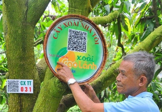 | Sản phẩm cây trồng của các thành viên Tâm Quê hội quán đều gắn mã quét truy xuất nguồn gốc. (Ảnh: Lê Hoàng Vũ) |