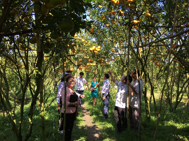 | Khách tham quan vùng sản xuất quýt ở huyện Lai Vung - Đồng Tháp. (Ảnh: K.V) |