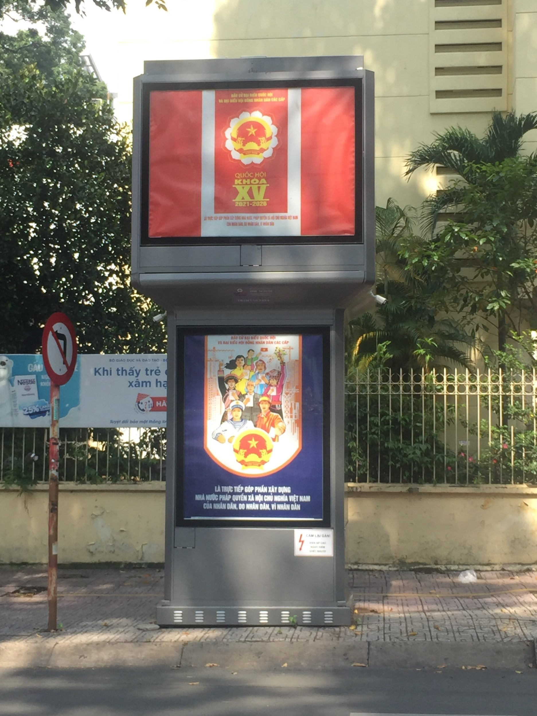 | Trạm điện được lắp đèn LED phục vụ tuyên truyền công tác bầu cử Quốc hội vào cuối tháng 5/2021. |