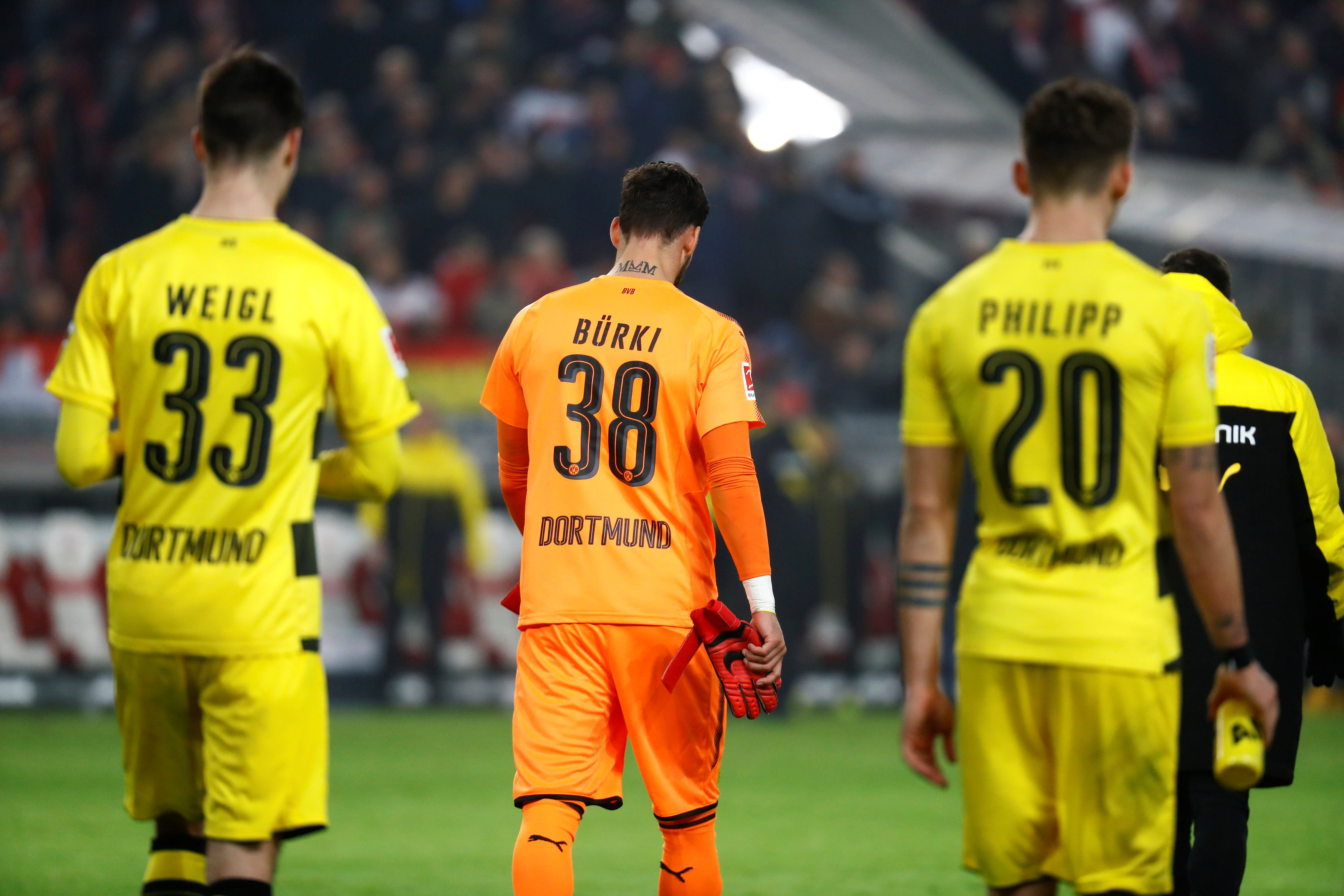 Nỗi thất vọng của các cầu thủ Dortmund sau trận thua Stuttgart. Ảnh: Reuters