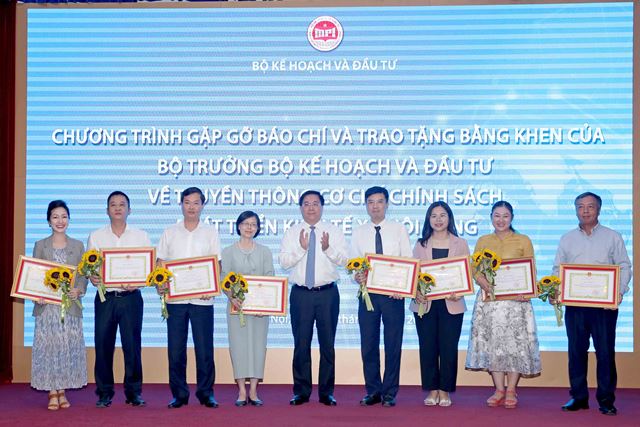 Ngày 20/6, tại trụ sở Bộ Kế hoạch và Đầu tư (KH&ĐT), Lãnh đạo Bộ đã trao Bằng khen Truyền thông phát triển kinh tế - xã hội Vùng cho 8 tập thể và 42 cá nhân nhằm tôn vinh các tập thể và cá nhân tiêu biểu, trong đó có Báo điện tử Đảng Cộng sản Việt Nam - là cầu nối trong việc giới thiệu, quảng bá hình ảnh về vùng đất, con người, tiềm năng, thế mạnh, cơ chế, chính sách phát triển kinh tế - xã hội (KT-XH), thúc đẩy thu hút đầu tư của các địa phương trong vùng đến với bạn bè, doanh nghiệp ở trong và ngoài nước.