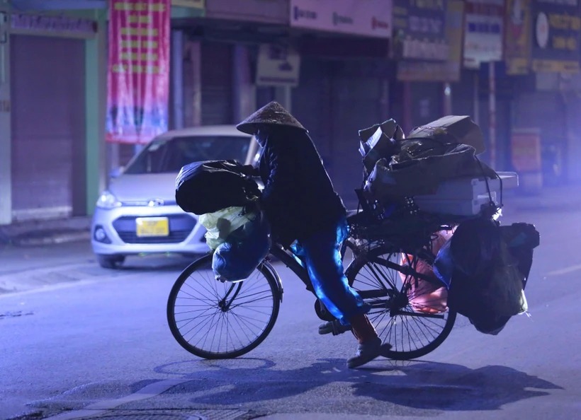 Người dân mưu sinh trong đêm giá rét. (Ảnh: Hoàng Hiếu/TTXVN)