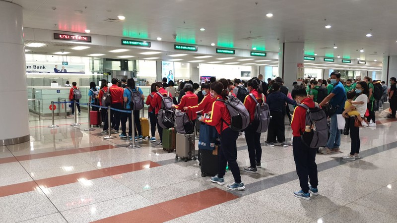 Chuyến bay kéo dài nhiều giờ đồng hồ khiến các thành viên đội tuyển nữ khá mệt mỏi. Tại hải quan sân bay, trước tình hình diễn biến phức tạp của dịch Covid 19, các thành viên ĐT nữ Việt Nam đã được hỗ trợ kiểm tra thân nhiệt và khai báo tại một cửa riêng.