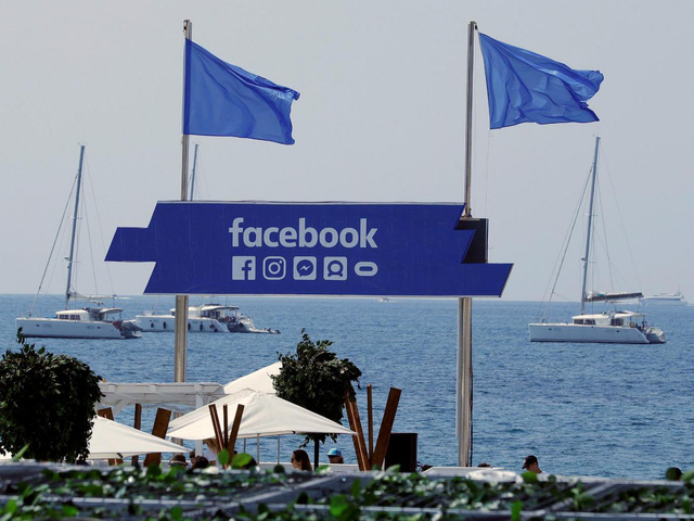 Logo mạng xã hội Facebook trên vùng biển ở thành phố Cannes, Pháp - Ảnh: Reuters