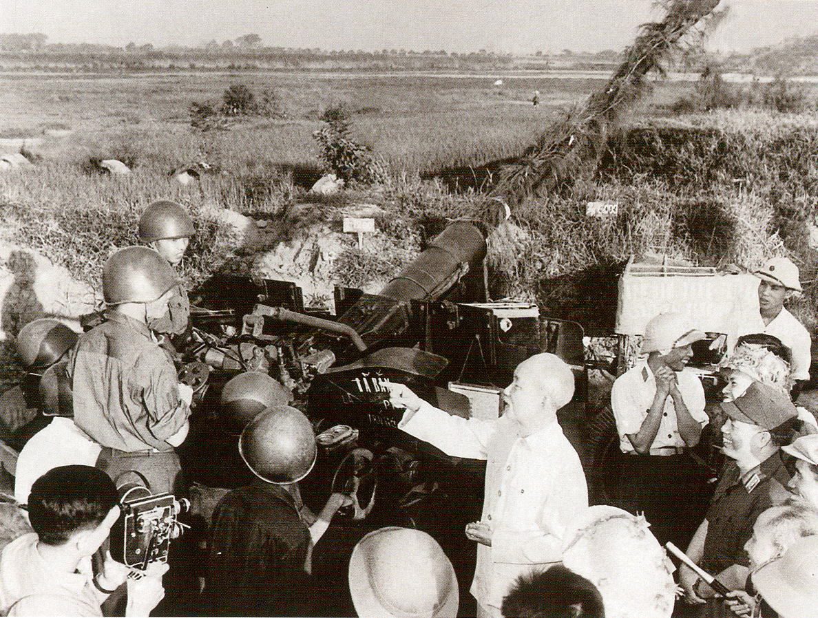 | Chủ tịch Hồ Chí Minh đến thăm các chiến sĩ lực lượng phòng không bảo vệ Thủ đô ngày 25/9/1966 (Ảnh tư liệu). |