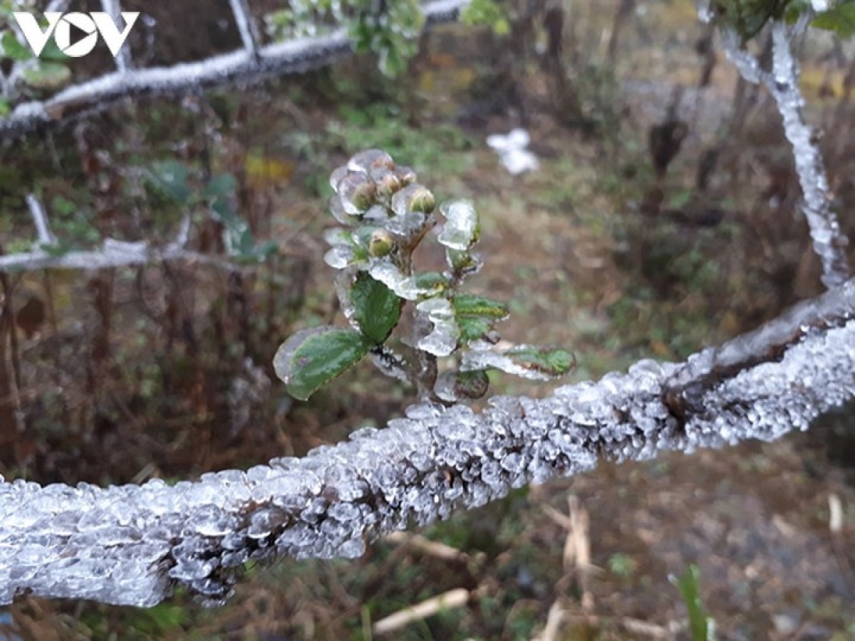 Băng giá và sương muối tiếp tục xuất hiện ở vùng núi cao phía Bắc
