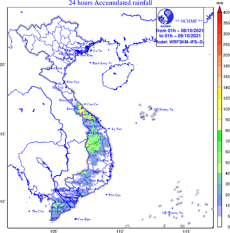 Chiều tối và đêm qua (7/10), ở khu vực từ Quảng Trị đến Quảng Ngãi và Bắc Tây Nguyên tiếp tục có mưa to, có nơi mưa rất to (lượng mưa tính từ 19h ngày 07/10 đến 03h ngày 08/10) như: Phước Năng (Quảng Nam) 296mm, Phổ Hòa (Quảng Ngãi) 296mm, Lộc Trì (Thừa Thiên Huế) 191mm, Hòa Ninh (Đà Nẵng) 117mm, Đăk Choong (Kon Tum) 71mm,…