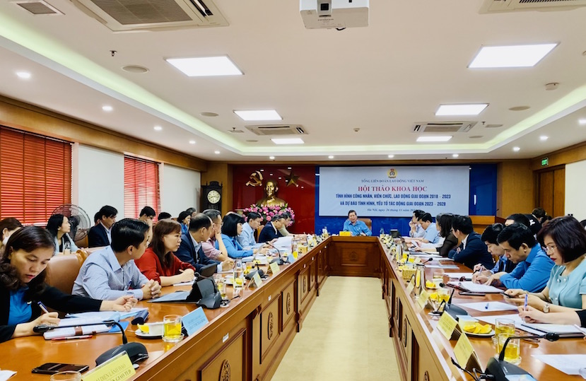 Ngày 26/11 tại Hà Nội, Tổng Liên đoàn Lao động Việt Nam tổ chức Hội thảo khoa học “Tình hình công nhân, viên chức, lao động giai đoạn 2018 – 2023 và dự báo tình hình, yếu tố tác động giai đoạn 2023 – 2028”. Dự và chủ trì có Phó Chủ tịch thường trực Tổng Liên đoàn Lao động Việt Nam Trần Thanh Hải .