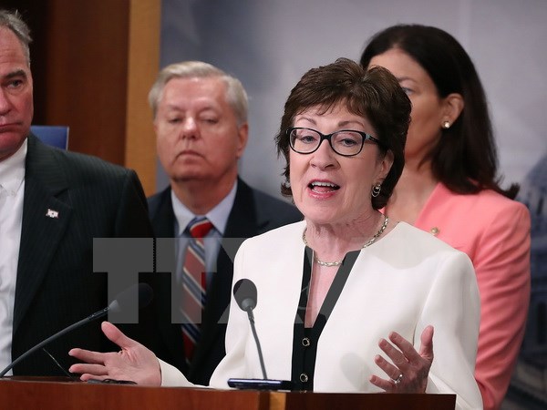 Thượng nghị sỹ Susan Collins trong cuộc họp báo tại Washington, DC ngày 21/6. (Nguồn: AFP/TTXVN)
