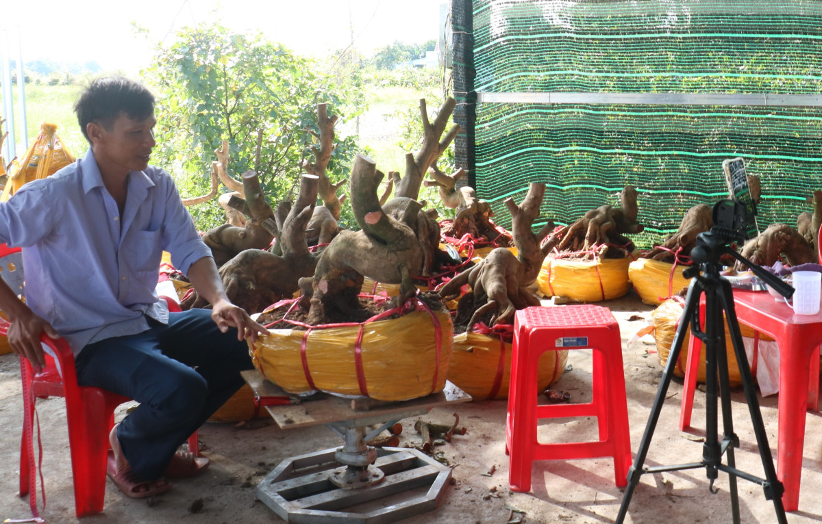 Bên cạnh đó, anh Đạt còn chia sẻ kinh nghiệm, hướng dẫn tận tình cách chăm sóc, tạo dáng cho cây mai. Thông qua livestream, trung bình mỗi ngày, anh bán được 10-20 gốc mai; mỗi tháng, anh bán khoảng 500 gốc mai, giá từ 2-5 triệu đồng/gốc. Còn đối với những cây mai lớn, tàn cây rộng, anh sẽ ra vườn livestream trực tiếp, sau đó, khách hàng sẽ đến tận nơi xem để quyết định có mua