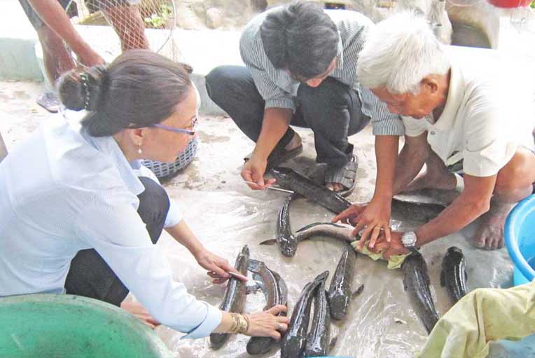 Cán bộ khoa học hướng dẫn kỹ thuật chọn cá bố mẹ