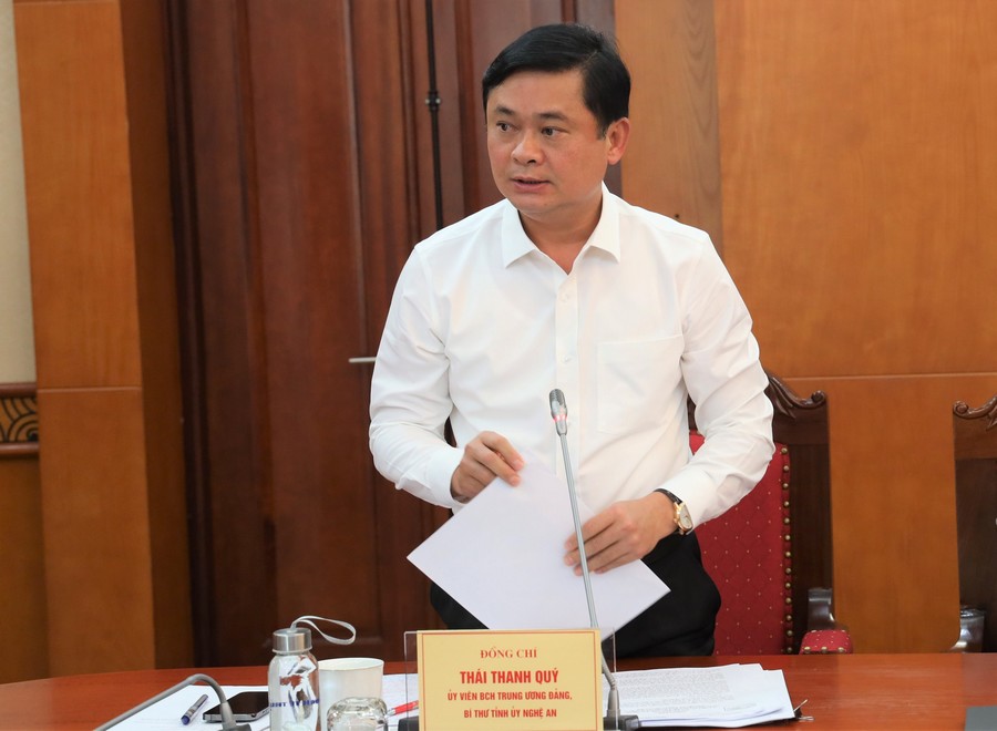 Cùng với đó, Bí thư Tỉnh ủy đề nghị bổ sung vào đề cương báo cáo tổng kết việc đánh giá kết quả thực hiện các quyết định của Thủ tướng Chính phủ để cụ thể hóa Nghị quyết số 26-NQ/TW của Bộ Chính trị gồm: Quyết định 2355/QĐ-TTg của Thủ tướng Chính phủ ngày 4/12/2013 phê duyệt Đề án phát triển kinh tế - xã hội miền Tây Nghệ An đến năm 2020; Quyết định số 2468/QĐ-TTg ngày 29/12/2015 của Thủ tướng Chính phủ phê duyệt Đề án Phát triển thành phố Vinh, tỉnh Nghệ An thành trung tâm kinh tế, văn hóa vùng Bắc Trung bộ đến năm 2020 và Quyết định số 827/QĐ-TTg ngày 12/6/2020 của Thủ tướng Chính phủ phê duyệt Đề án phát triển thành phố Vinh, tỉnh Nghệ An thành trung tâm kinh tế, văn hóa vùng Bắc Trung bộ đến năm 2023.