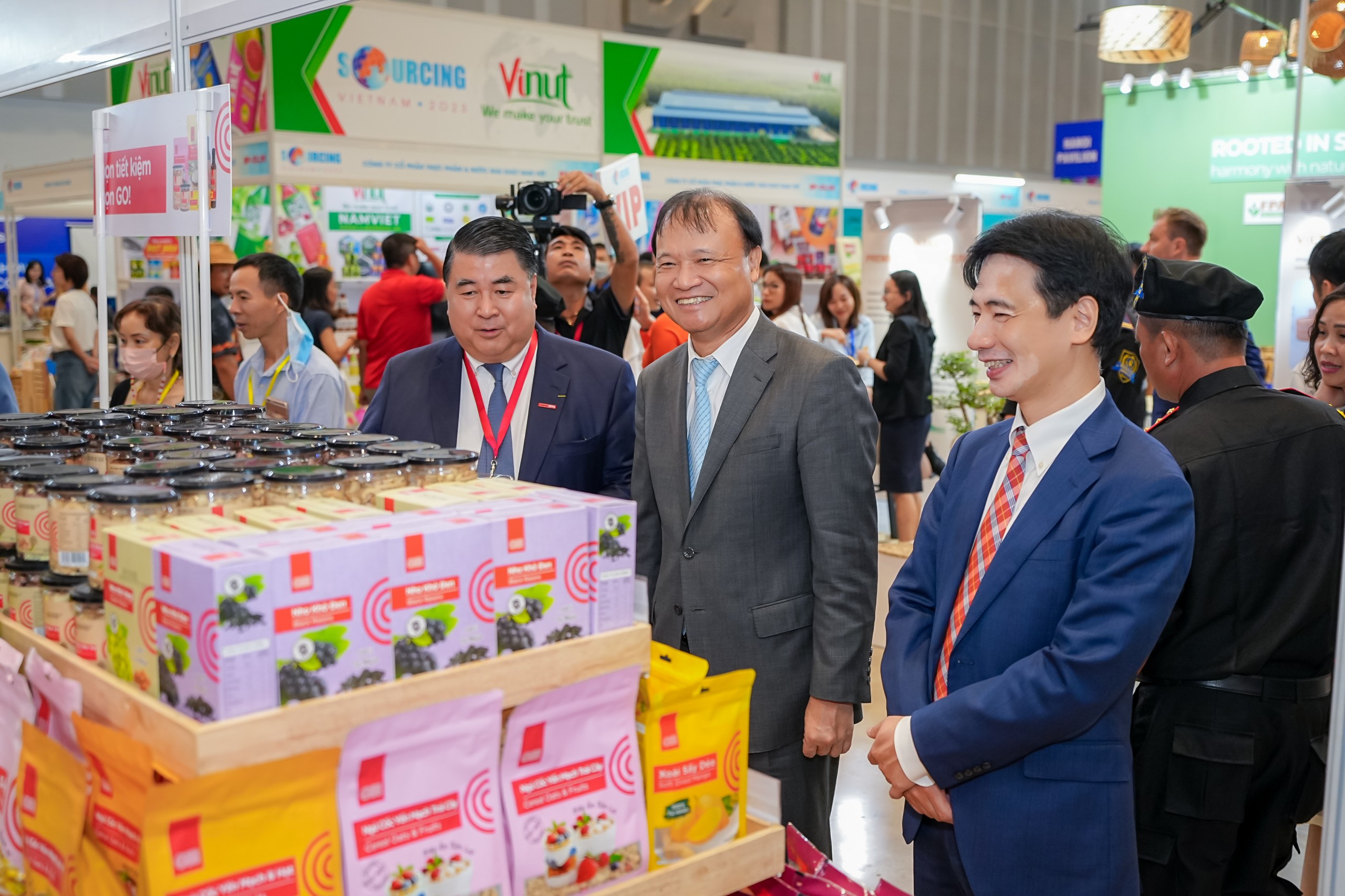 | Đại diện Lãnh đạo Bộ Công Thương tham quan gian hàng tại Chuỗi sự kiện “Kết nối chuỗi cung ứng hàng hóa quốc tế”. (Ảnh: Chi Mai) |