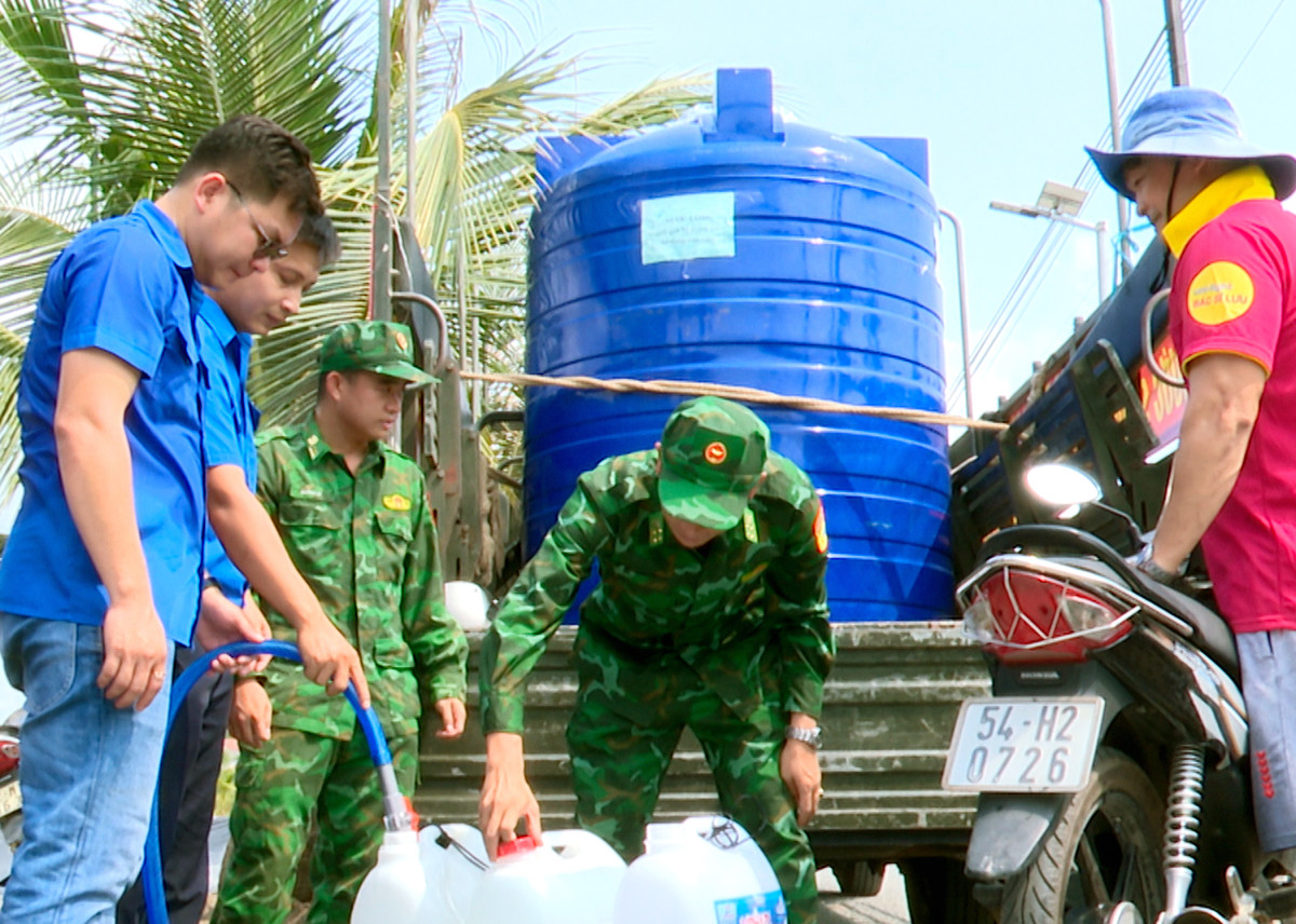 Dịp này, đơn vị vận chuyển hơn 50m3 nước sinh hoạt, 3.000 lít nước uống tinh khiết và 300 lốc nước đóng chai cho các hộ dân. Với tinh thần “Vì Nhân dân phục vụ”, những chuyến xe chở nước sạch mang theo nghĩa tình quân - dân được cán bộ, đoàn viên, thanh niên Bộ đội Biên phòng tỉnh, Chi đoàn cơ sở Sở Xây dựng và Chi đoàn Sở Kế hoạch và Đầu tư cẩn thận vận chuyển đến xã Tân Tập, huyện Cần Giuộc. Đây là việc làm mang ý nghĩa nhân văn sâu sắc, là tình cảm và trách nhiệm của cán bộ, chiến sĩ Bộ đội Biên phòng tỉnh đối với người dân vùng hạn, mặn, góp phần bảo đảm an sinh xã hội, ổn định đời sống và chia sẻ một phần khó khăn với người dân.