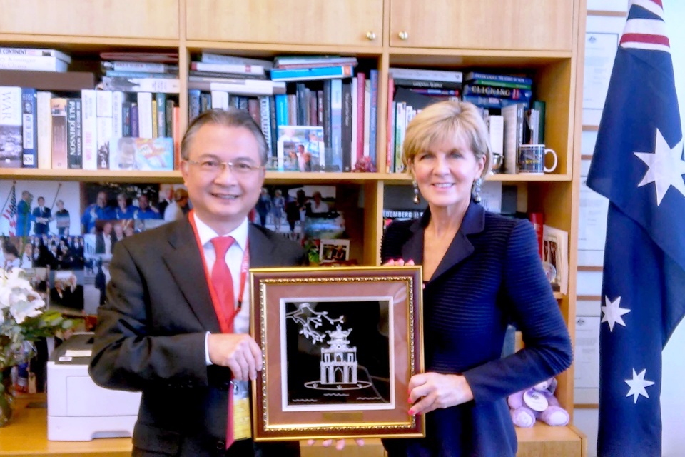 Tại buổi tiếp, đánh giá cao và bày tỏ hài lòng về sự phát triển tích cực của quan hệ Đối tác Toàn diện tăng cường Việt Nam – Australia trong thời gian qua, Bộ trưởng Ngoại giao Australia Julie Bishop coi đây là nền tảng vững chắc để đưa quan hệ song phương lên tầm cao mới.