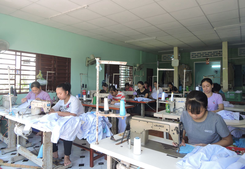 Nhờ sự hỗ trợ của vốn vay NHCSXH, chị Tuyết Trinh phát triển cơ sở may gia công, tạo việc làm cho nhiều lao động tại địa phương.
