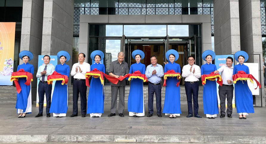 | Các đại biểu cắt băng khai mạc triển lãm ảnh trước khi diễn ra hội nghị |