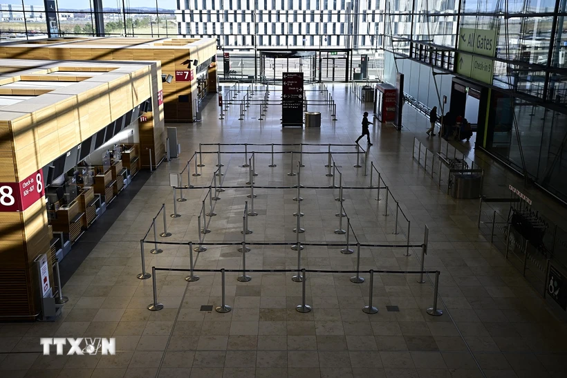 Cảnh vắng vẻ tại sân bay Berlin Brandenburg, Đức, do cuộc đình công của những người lao động trong ngành vận tải công cộng ngày 01/2/2024. (Ảnh: AFP/TTXVN)
